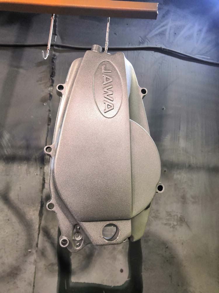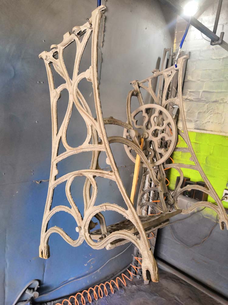 Для того чтобы очистить поверхность изделия от разного рода загрязнений (застарелого лакокрасочного покрытия, ржавчины), используется пескоструйная обработка. Глубокая очистка металлической поверхности необходима для максимальной адгезии нового лакокрасочного покрытия к основе.